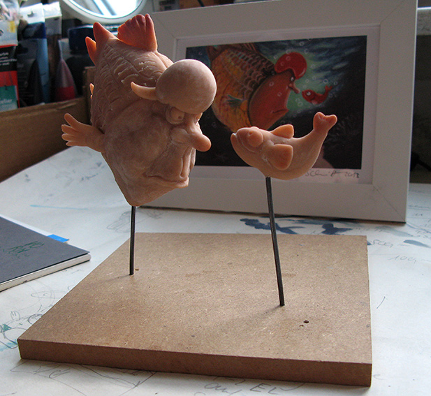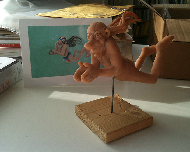Einige Charakterentwürfe dienten mir als Vorlage zu dreidimensionalen Figuren aus Ton oder „Super Sculpey“, einem wie Knete zu formendem Material, das man im Backofen härtet.